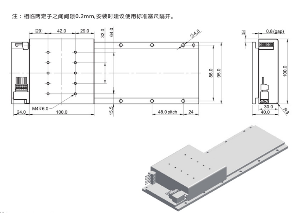 3.磁性吸引力,动子定子间会产生较大的磁性吸引力
